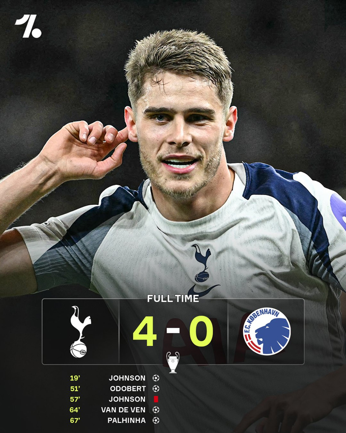 Đại thắng 4-0 trước Copenhagen, Tottenham duy trì mạch bất bại sau 4 trận tại Champions League (thắng 2 và hoà 2). Họ hiện tạm đứng thứ 7 trên BXH vòng phân hạng.