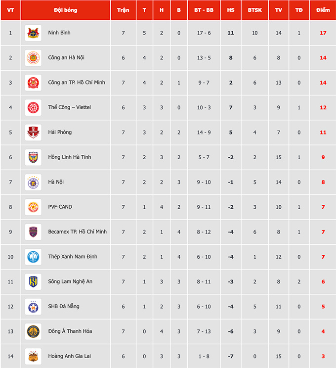 Hồng Lĩnh Hà Tĩnh: Thanh Tùng, Văn Hạnh, Helerson, Duy Thường (Văn Hiệp 71’), Huỳnh Tấn T, Viết Triều, Sỹ Hoàng, Trọng Hoàng (Quang Nam 84’), Lê Viktor (Văn Khánh 57’), Onoja, Atshimene