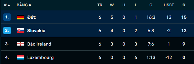 Thắng trận với tỷ số của một séc tennis, Đức giành ngôi nhất bảng A để tới World Cup, trong khi Slovakia sẽ phải đá play-off.