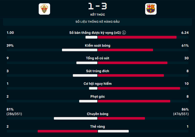 Kết quả Elche 1-3 Barcelona: Barca hơn Real 4 điểm