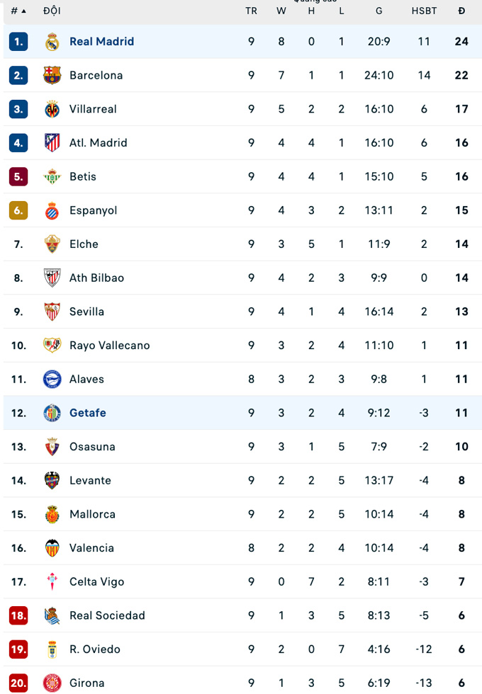| La Liga - Vòng 11 | |||