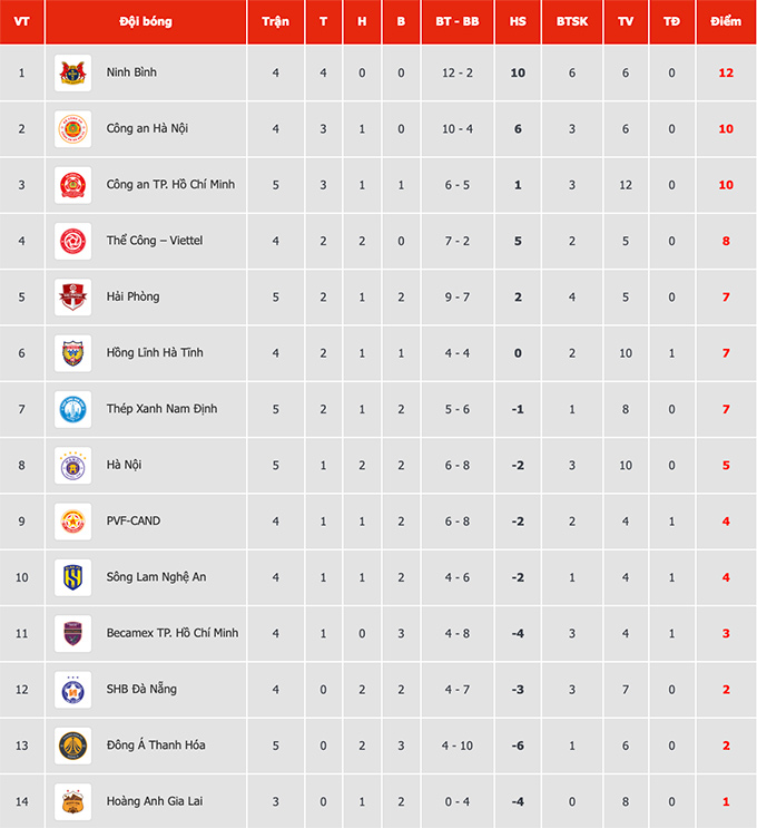 | TT | Đội bóng | Trận | +/- | Điểm |