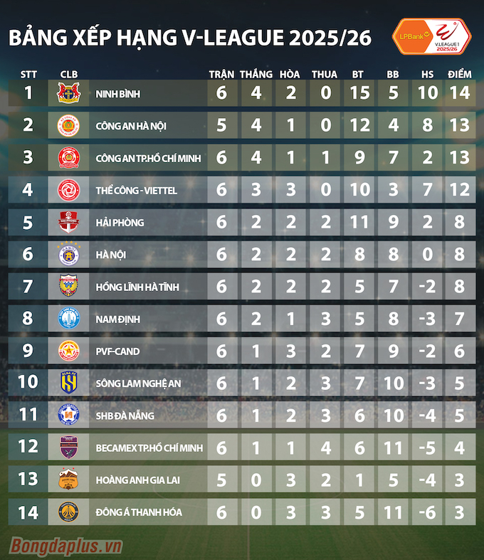 | TT | Đội bóng | Trận | +/- | Điểm |