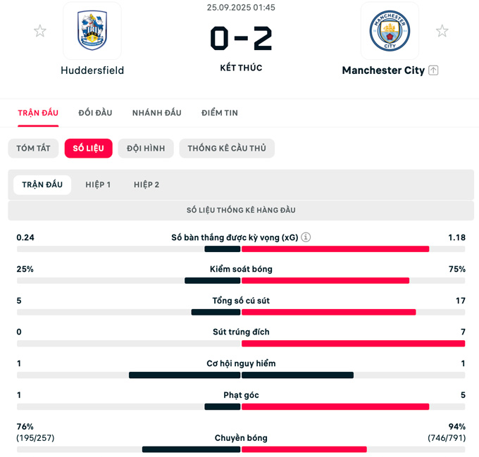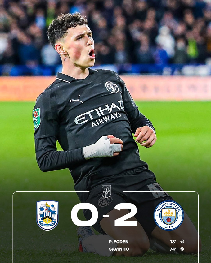 Bước sang hiệp hai, Man City vẫn thi đấu dưỡng sức nhưng vẫn có thêm bàn thắng ở phút 74. Lần này, Foden đóng vai người kiến tạo để giúp Savinho sút tung lưới Huddersfield ở góc hẹp.
