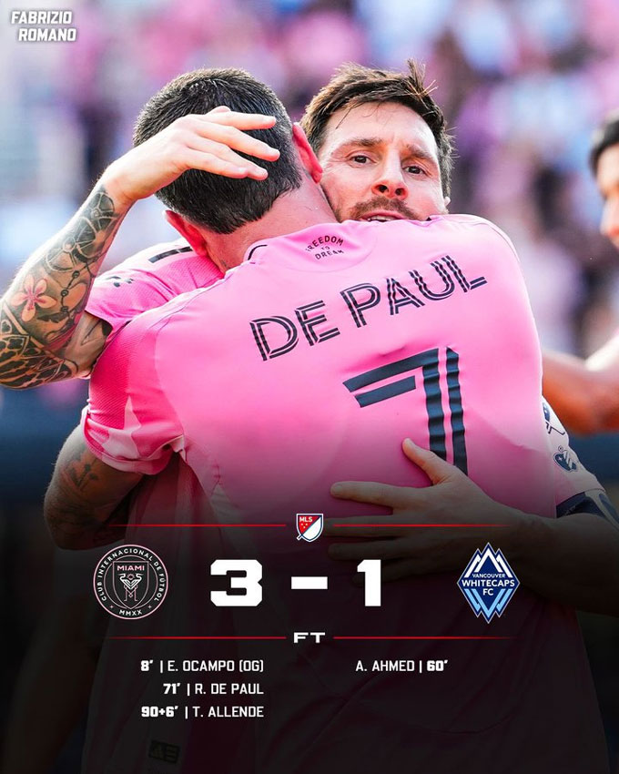 Inter Miami: Ocampo (8'-phản lưới), De Paul (71'), Allende (90'+6)