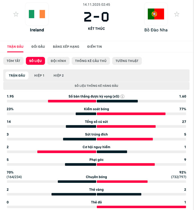 Bồ Đào Nha hành quân đến Dublin với mục tiêu giành trọn 3 điểm để chính thức đoạt vé World Cup 2026, nhưng họ lại trải qua một đêm ác mộng trước Ireland đầy quyết tâm.