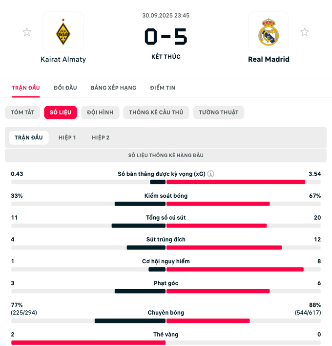 Kết quả Kairat 0-5 Real Madrid: Ngày thăng hoa của Mbappe