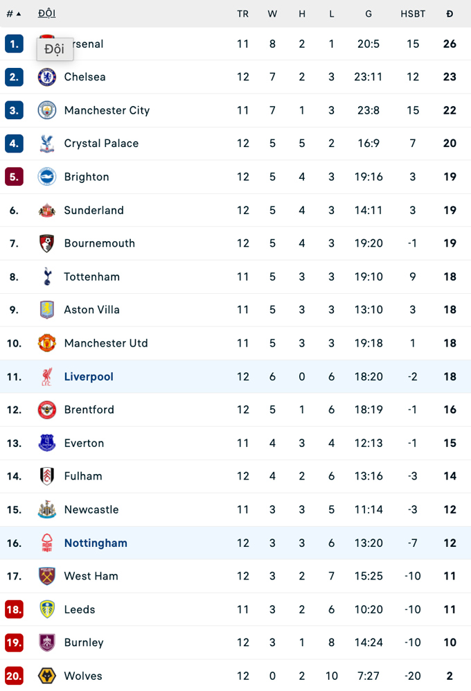 | Premier League - Vòng 12 | |||