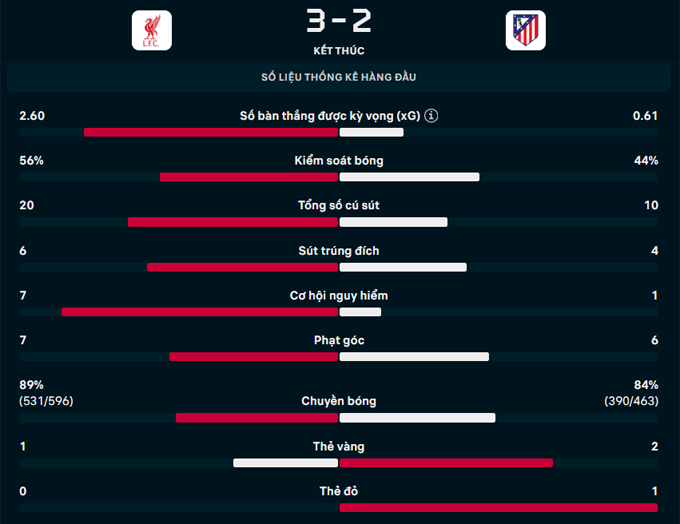 Không chấp nhận chia điểm trên sân nhà, Liverpool ép sân toàn diện với Atletico. Phải chờ tới phút 90+2, CĐV ở Anfield mới được hưởng niềm vui khi quả phạt góc của Szoboszlai đã đến đúng vị trí của Van Dijk trước khi trung vệ người Hà Lan đánh đầu tung lưới Oblak. 3-2 cho Liverpool và đội ĐKVĐ Ngoại hạng Anh có 3 điểm đầu tay ở vòng phân hạng Champions League 2025/26.