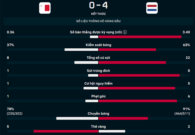 Đáng chú ý, Malta không hề nao núng dù nhận bàn thua. Họ cố gắng tìm bàn gỡ hòa và có một số thời điểm khiến khung thành đối phương gặp chút sóng gió. Nhưng việc không ghi được bàn trong hiệp một khiến Malta phải trả giá.