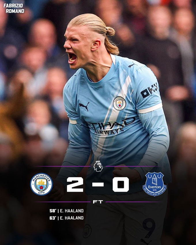 Dù sao thì 2 bàn của Haaland cũng là đủ để Man City có được chiến thắng trên sân nhà trước Everton và tạm chiếm ngôi đầu trước khi Arsenal ra sân.