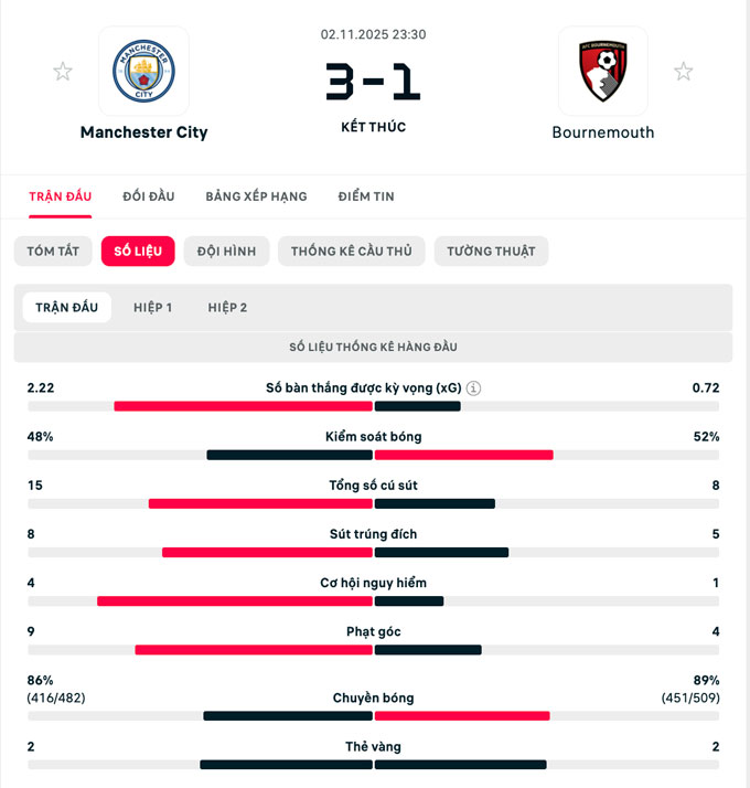 Tuy nhiên, việc để lỏng Haaland khiến Bournemouth lại phải trả giá ở phút 33 với kịch bản tương tự. Vẫn là Cherki chuyền bóng để Haaland bứt tốc và ghi bàn.
