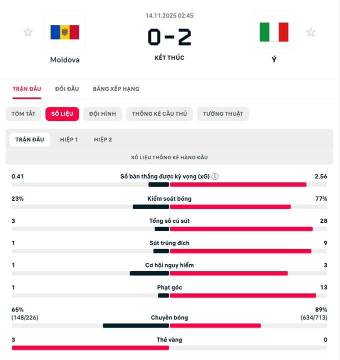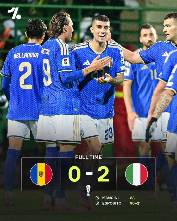 Khi chủ nhà dâng đội hình tìm bàn gỡ, Italia tận dụng khoảng trống để tung ra đòn kết liễu. Phút 90+2, Francesco Pio Esposito bật cao đánh đầu từ một quả đá phạt, ấn định chiến thắng 2-0 đầy thuyết phục.