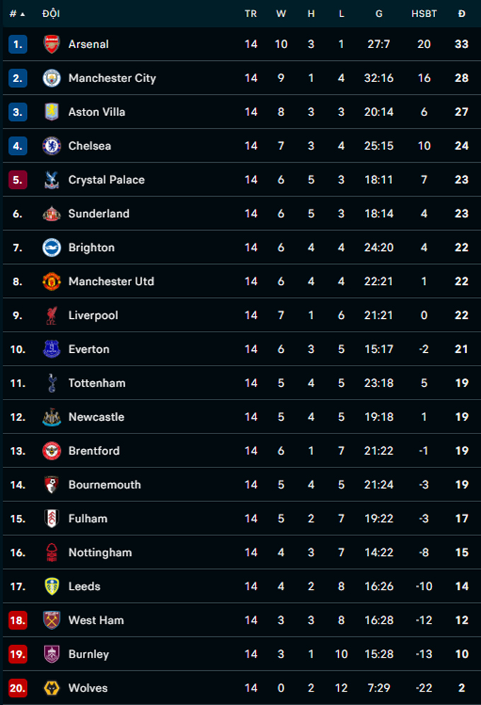 | TT | Đội bóng | Trận | +/- | Điểm |