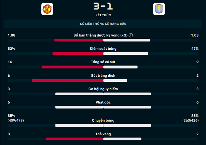 Pha lập công này cũng đánh dấu bàn thắng thứ tư mà Sesko ghi được sau khi vào sân thay người ở mùa giải này. Đánh bại Aston Villa, MU xếp thứ 3 trên BXH Ngoại hạng Anh 2025/26 khi có 54 điểm và tạm hơn 3 điểm so với chính đối thủ.