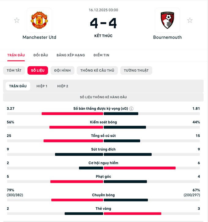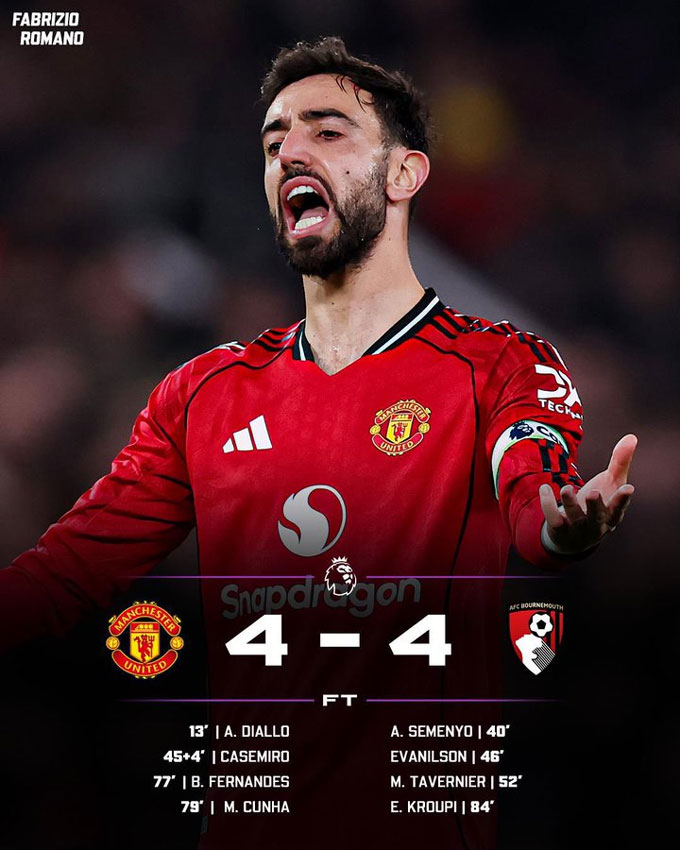 Kết quả MU 4-4 Bournemouth: Trận cầu điên rồ