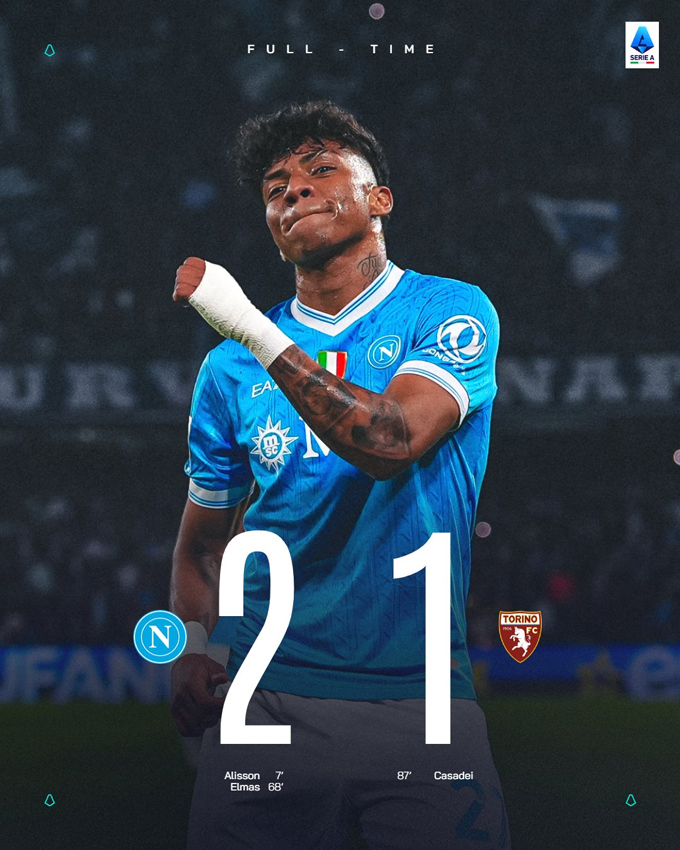 Napoli: Alisson Santos (7'), Elmas (68')