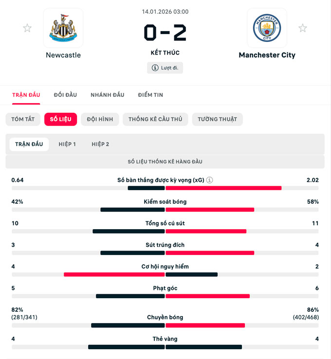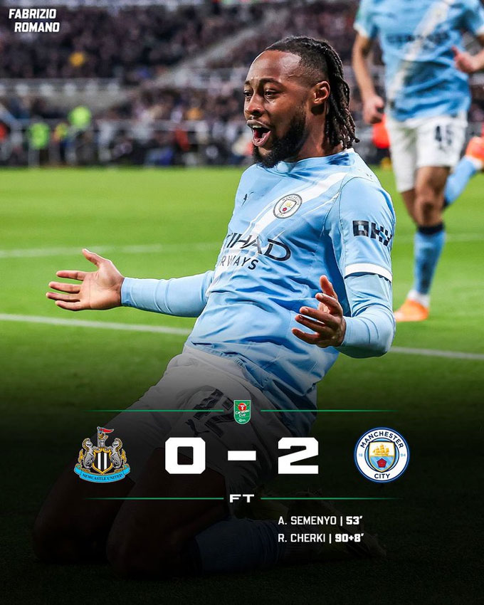 Newcastle rất cố gắng gỡ hòa trong hiệp hai. Nhưng giống như trong hiệp một, Chích chòe tỏ ra quá vô duyên. Đến phút 90+9, Man City tung đòn kết liễu khi Cherki ghi bàn ấn định tỷ số 2-0.