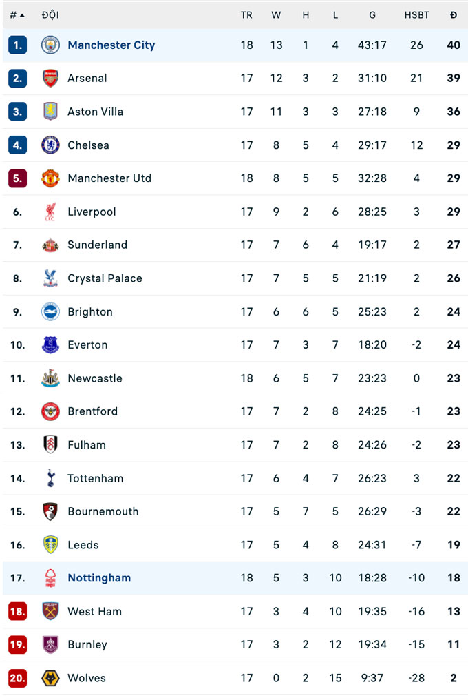 | Premier League - Vòng 24 | |||