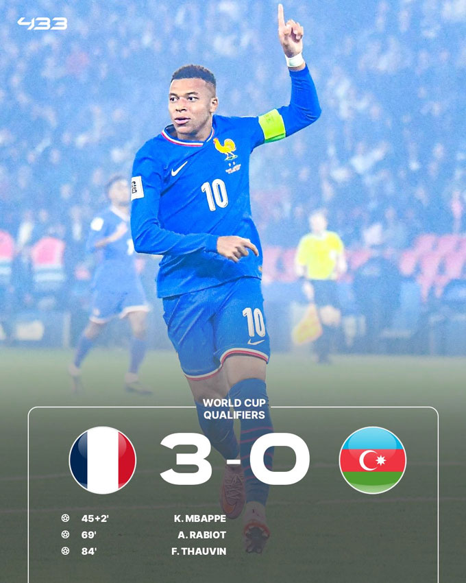 Kết quả Pháp 3-0 Azerbaijan: Mbappe toả sáng