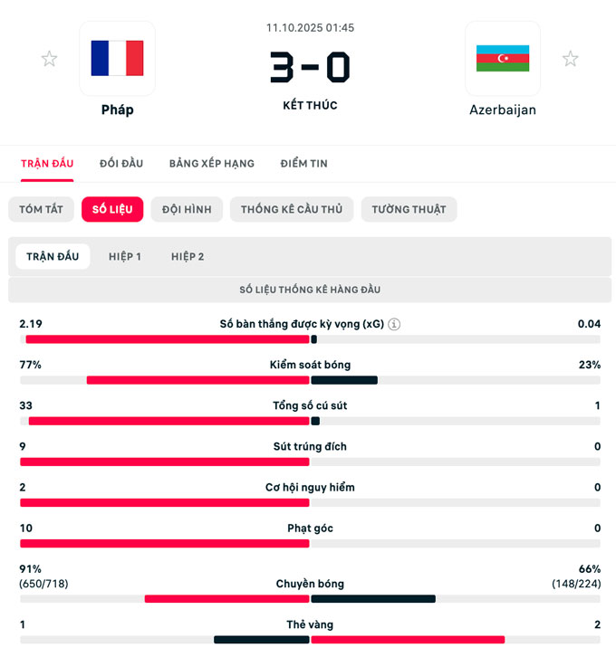 Chỉ phải tiếp đón một Azerbaijan bị đánh giá yếu hơn rất nhiều nhưng HLV Didier Deschamps vẫn quyết định tung ra sân đội hình mạnh nhất của ĐT Pháp.