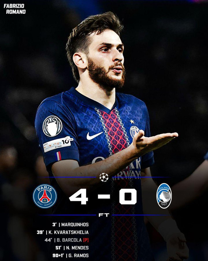 Những phút sau đó, PSG tấn công dồn dập và chỉ có may mắn mới giúp Atalanta thoát thua. Thậm chí ở phút 22, Barcola đã đã đưa được bóng vào lưới đội khách nhưng trọng T không công nhận do lỗi việt vị.
