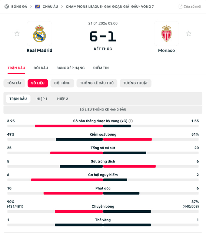 Mải mê tấn công, Real để lộ sơ hở hơi hàng thủ. Phút 72, Teze tận dụng sai lầm của Ceballos để ghi bàn rút ngắn cách biệt xuống 1-5 cho Monaco, dù vậy đó là tất cả những gì đại diện nước Pháp làm được ở trận này.