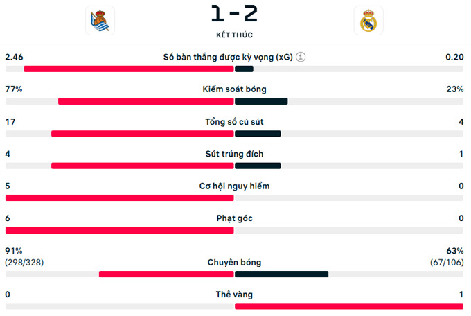 Sức ép liên hồi được Sociedad tạo ra khiến Real Madrid chỉ còn biết kéo thấp đội hình phòng ngự, và rốt cuộc thầy trò Xabi Alonso cũng bảo toàn thành quả với một chiến thắng rời sân Anoeta.
