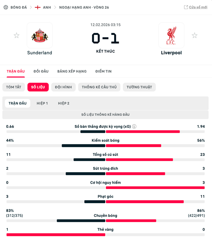 Liverpool bỏ lỡ nhiều cơ hội nhưng họ không phải trả giá. Sunderland trong hiệp hai chơi thiếu hiệu quả, qua đó chấp nhận thua 0-1 trước Liverpool.