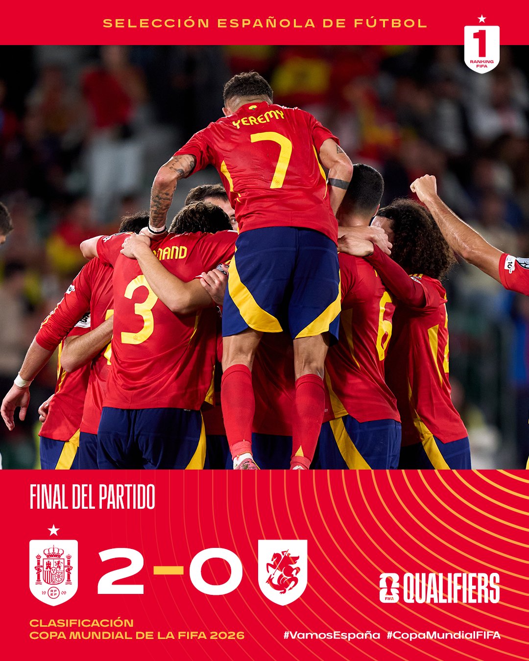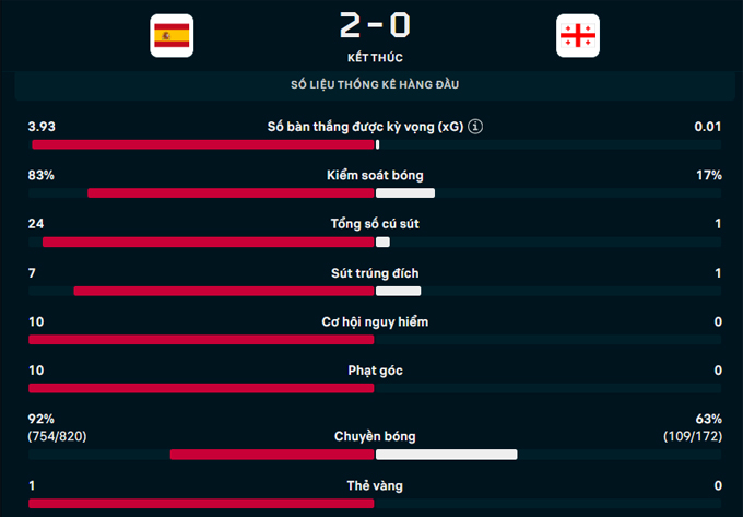 Oyarzabal sút phạt uy lực, đánh bại hoàn toàn thủ môn Mamardashvili để ấn định chiến thắng cho Tây Ban Nha. Với 3 trận toàn thắng, Tây Ban Nha đứng đầu bảng E và đang tiến vững chắc trên hành trình giành vé trực tiếp tới World Cup 2026.