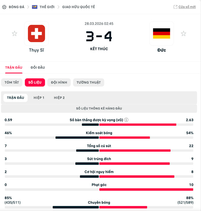 Chiến thắng này là bước chạy đà quan trọng cho Đức trước thềm World Cup 2026. “Cỗ xe tăng” sẽ tiếp tục thi đấu giao hữu với Ghana, trong khi Thụy Sỹ đối đầu Na Uy ở trận tiếp theo.