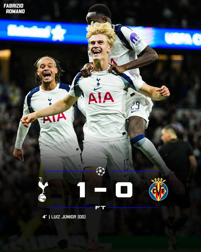 Spurs khép lại trận mở màn vòng phân hạng Champions League 2025/26 bằng chiến thắng quan trọng 1-0, tạm thời chiếm vị trí thứ 5 trên BXH. Trong khi đó, Villarreal tạm đứng thứ 34/36 đội.