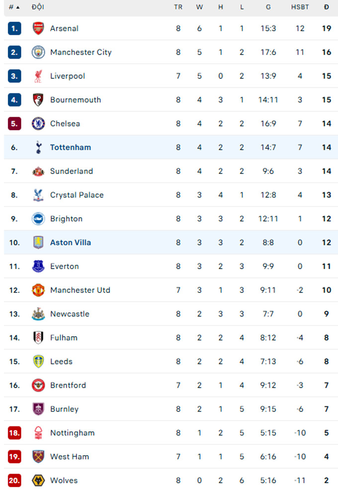 Thất bại này khiến Tottenham đứt mạch bất bại, đồng thời lỡ cơ hội chen chân vào Top 4 Premier League. Ở vòng 9, Spurs sẽ làm khách đến sân của Everton. Trước đó, họ sẽ đụng độ Monaco ở vòng phân hạng Champions League hôm 23/10.