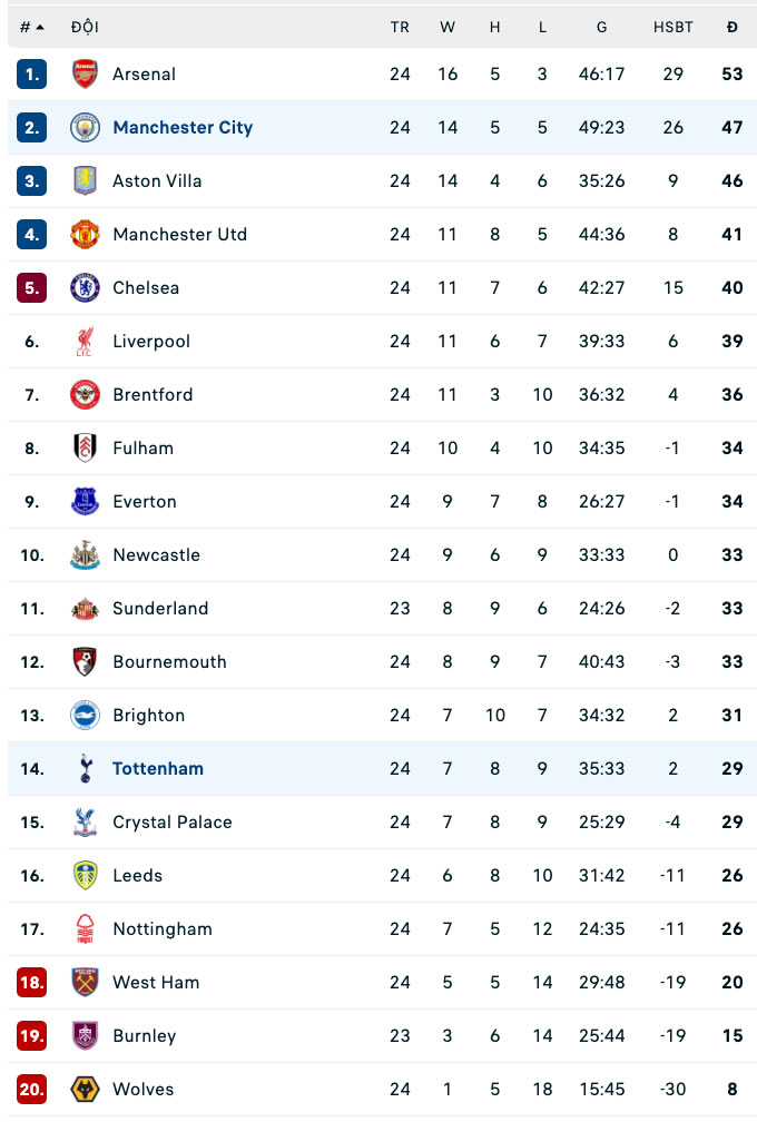 Dù thời gian còn lại là khá nhiều nhưng cả Tottenham và Man City đều không thể có thêm bàn thắng. Chung cuộc, hai đội hòa 2-2 và Man xanh hiện đã bị Arsenal bỏ xa tới 6 điểm.