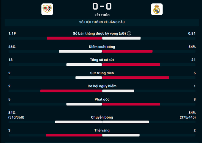 Kết quả Vallecano 0-0 Real Madrid: Thất vọng Los Blancos
