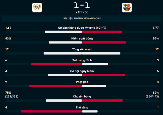 Kết quả Vallecano 1-1 Barcelona: 1 điểm thất vọng