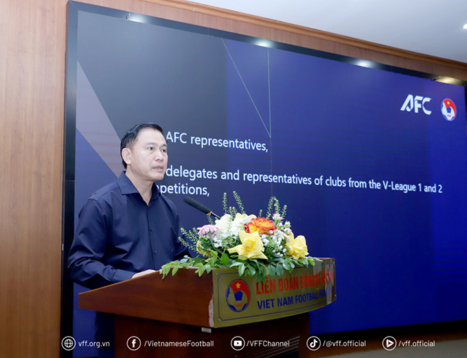 Trong khi đó, ông Doojin Sa – Trưởng phòng Bóng đá chuyên nghiệp AFC chia sẻ: “Những năm qua, LĐBĐVN đã triển khai hiệu quả công tác cấp phép câu lạc bộ, đặt nền móng vững chắc cho quá trình chuyên nghiệp hóa bóng đá. Hội thảo lần này là cơ hội để tiếp thu kiến thức cũng như các đại biểu chia sẻ ý kiến, phản hồi nhằm cải thiện hơn nữa quy trình cấp phép. Tôi mong rằng tất cả sẽ quý vị sẽ cùng tham gia thảo luận một cách tích cực và tập trung cao độ”.