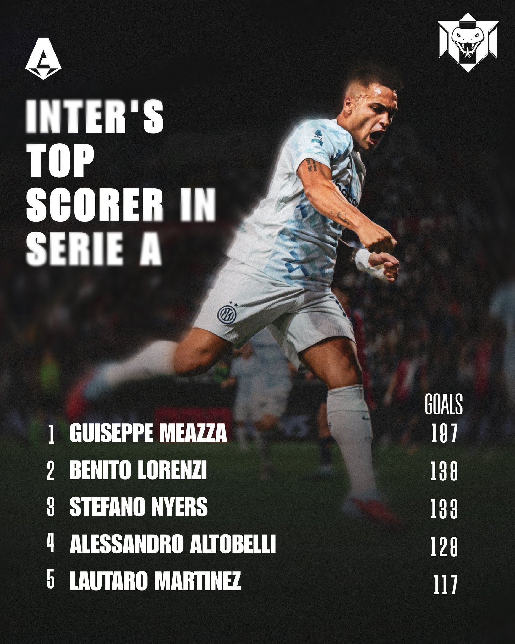 Trên tất cả vẫn là tượng đài Giuseppe Meazza sở hữu 197 bàn, con số gần như “ngoài tầm với” trong bóng đá hiện đại. Meazza là biểu tượng trọn vẹn của Inter, không chỉ ghi bàn mà còn đại diện cho một thời kỳ hoàng kim. Lautaro khó lòng đuổi kịp cột mốc ấy, nhưng điều đó không làm giảm đi tầm vóc của anh.
