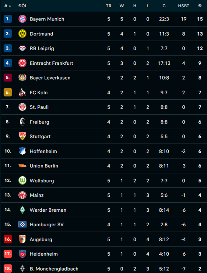 Kết quả giúp đội bóng vùng Rhine tạm leo lên vị trí thứ 5 trên BXH Bundesliga với 8 điểm sau 5 trận đấu. Nhiều ý kiến lo ngại Leverkusen sẽ khủng hoảng sau khi sớm sa thải Ten Hag nhưng xem ra, đây lại là quyết định đúng của BLĐ nếu nhìn vào lúc này.