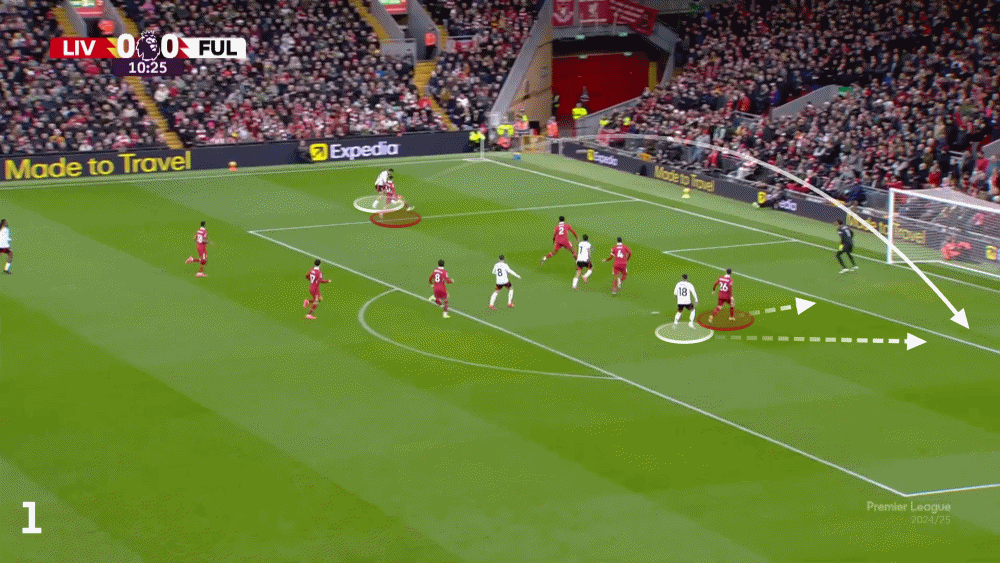 Đây là một bàn thắng không khác biệt nhiều so với pha dứt điểm của Andreas Pereira (Fulham) tại Anfield mùa trước, nơi đường tạt sâu từ Antonee Robinson đã khiến hậu vệ trái của Liverpool bị bất ngờ - với việc Pereira vô lê cận thành trước khi Alisson kịp phản xạ.