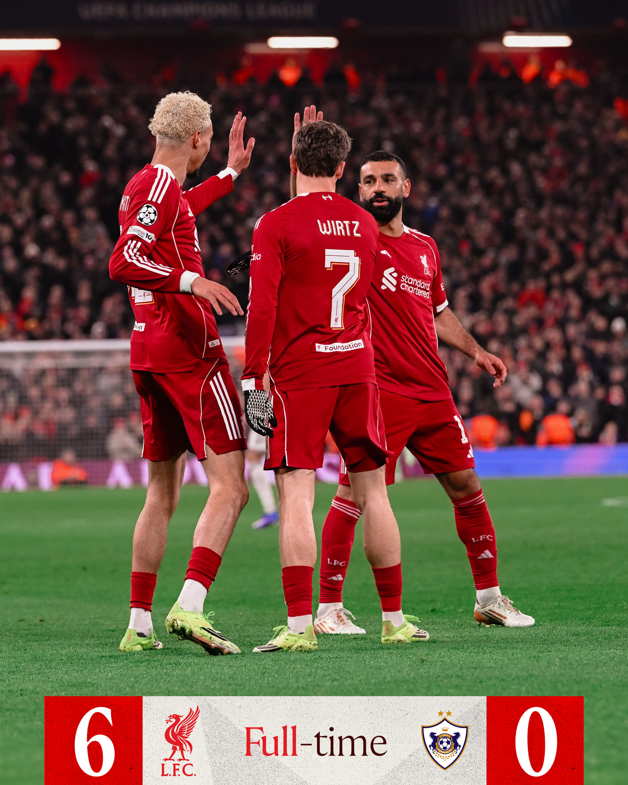 Qarabag đang trong khu vực an toàn nhưng hòa cũng có thể khiến họ bị loại. Dù vậy Liverpool cũng có động lực chiến thắng khi họ có thể đoạt suất top 8, dù ngay đầu trận Liverpool đã mất Wataru Endo vì chấn thương. Nhưng việc đó không vấn đề gì khi Liverpool chơi quyết tâm và máu lửa. Họ chỉ mất mất 15 phút để có bàn thắng khi Mac Allister đưa bóng qua vạch vôi sau một pha phạt góc. Pha bóng đó có dấu ấn của Ekitike với cú đánh đầu chuyền, và tới phút 21 chính anh đã trực tiếp kiến tạo, đột phá thẳng qua tuyến giữa Qarabag và chọc khe cho Florian Wirtz ghi bàn.