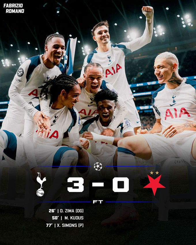 Bước sang hiệp 2, Tottenham có thêm 2 bàn thắng nữa đều từ chấm phạt đền. Những người lập công là Kudus và Xavi Simons. Đội bóng thành London giành chiến thắng 3-0 và tạm đứng thứ 9 trên BXH.