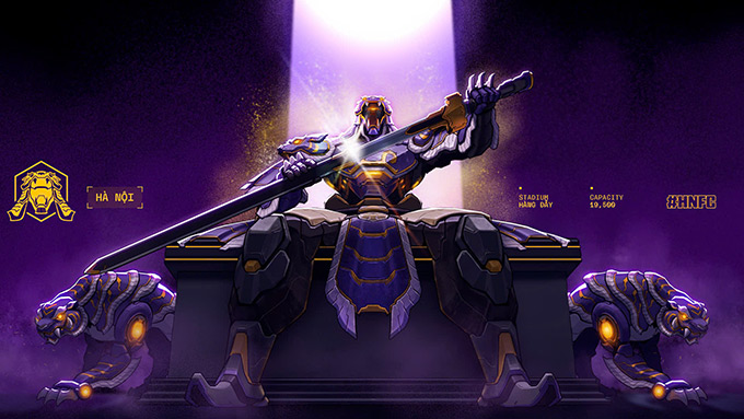 CLB Hà Nội: Đội trưởng Văn Quyết là đại diện cho dàn cầu thủ đội bóng thủ đô, xuất hiện cùng robot được xây dựng dựa trên cảm hứng từ mascot của CLB, với gam màu tím đặc trưng. Đặc biệt, việc tạo hình còn dựa trên chất liệu tranh Ngũ hổ dân gian Đông Hồ cùng thiết kế của Giáp hổ tướng thời Trần tạo nên hình ảnh mạnh mẽ và đầy ngạo nghễ của đội bóng giàu thành tích bậc nhất V.League