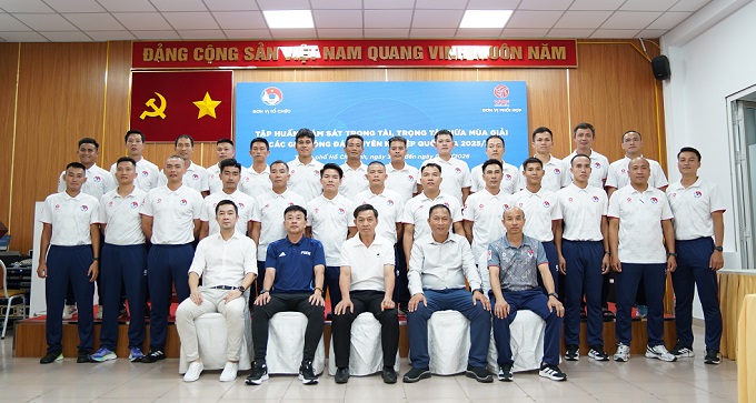 Chiều 30/3, tại Hội trường TDTT Thống Nhất (TP.HCM), LĐBĐ Việt Nam (VFF) phối hợp cùng Công ty CPBĐCN Việt Nam (VPF) tổ chức Tập huấn giữa mùa giải các giải bóng đá chuyên nghiệp Quốc gia (BĐCNQG) 2025/26 cho lực lượng giám sát trọng T, trọng T.