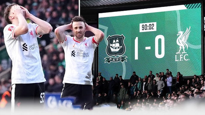 HLV Arne Slot thực hiện tới 10 sự thay đổi trong đội hình Liverpool sau trận bán kết Cúp Liên đoàn, và ông đã phải trả giá. Phút 53, Plymouth được hưởng phạt đền sau pha để bóng chạm tay của Harvey Elliott, và Ryan Hardie lạnh lùng sút tung lưới.