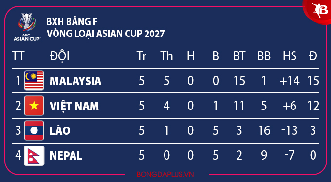 Cho đến trước trận cuối cùng với ĐT Việt Nam vào tháng 3 năm sau, Malaysia đã trải qua một hành trình hướng đến Asian Cup 2027 như mơ, không mấy ai tin có thể xảy ra. Thắng lợi trước Nepal ở trận lượt về diễn ra vào tối 18/11 với tỷ số 1-0 đem đến cảm giác chật vật, khó khăn. Nhưng với Malaysia, chừng ấy là đủ. Bởi họ hoàn thành mục tiêu 3 điểm. Quan trọng hơn, có thắng đến 10-0 thì cũng không có nghĩa lý gì bởi cục diện ở bảng F chỉ được định đoạt bằng đối đầu trực tiếp (điểm số, bàn thắng bại giữa 2 trận đối đầu) với ĐT Việt Nam một khi cùng có 15 điểm như nhau.