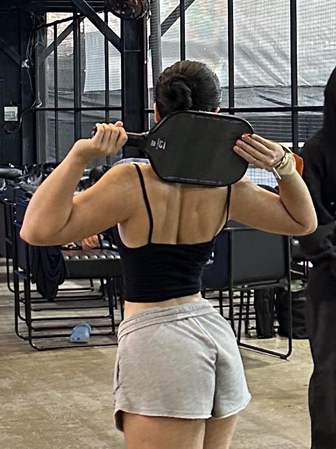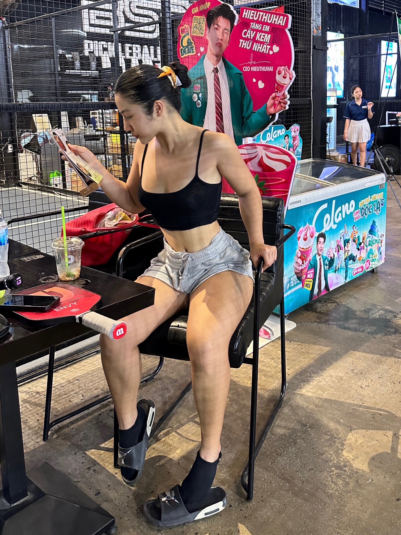 Hóa ra trước khi thưởng trà vào buổi tối, Trần Kim Hà cũng chơi khá nhiều môn thể thao từ chạy bộ, pickleball cũng như đến phòng tập gym để rèn luyện sức khỏe. Cô gái này cũng khéo khoe body khỏe mạnh, ba vòng chuẩn chỉnh và đặc biệt là chiếc áo 2 dây màu đen khá quyến rũ. Lúc này, Trần Kim Hà đang là cái tên được các fan rất quan tâm.
