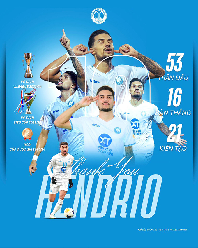 Trao đổi với báo chí, phía CLB Nam Định cho biết, nhà ĐKVĐ V.League và Hendrio đã thống nhất thanh lý hợp đồng sớm. “Do suất ngoại binh đăng ký có hạn nên đội cũng khó khăn trong việc quyết định đăng ký”, phía Nam Định cho hay.