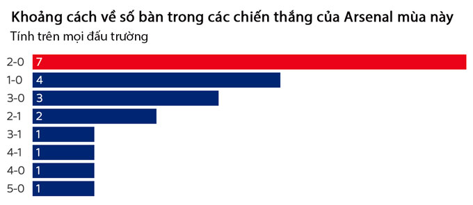 Có vẻ như điều đó đã phát huy tác dụng. Quên câu cửa miệng “1-0 cho Arsenal” đi. Thực tế, 2-0 mới là tỷ số xuất hiện nhiều nhất của họ mùa này.