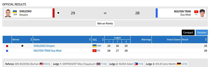 Hiệp 3 trở thành bước ngoặt khi thể lực của Duy Nhất bị bào mòn đáng kể. Shelesko tăng cường áp sát, dồn võ sĩ Việt Nam vào thế chống đỡ. Một tình huống bị quật ngã vào cuối hiệp khiến Duy Nhất mất điểm quan trọng, và kết quả chung cuộc, Shelesko giành chiến thắng trên điểm, giành vé vào chung kết.